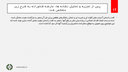 در شرکت فرآورده های نسوز ایران با هماهنگی بخش های تولیدی و فنی و با نظر مدیریت محترم عامل در مرحله اول سه عارضه به شرح ذیل شناسایی و با رویکرد فوق الذکر شناسایی ، ریشه یابی و مستند سازی شد که عبارتند از :